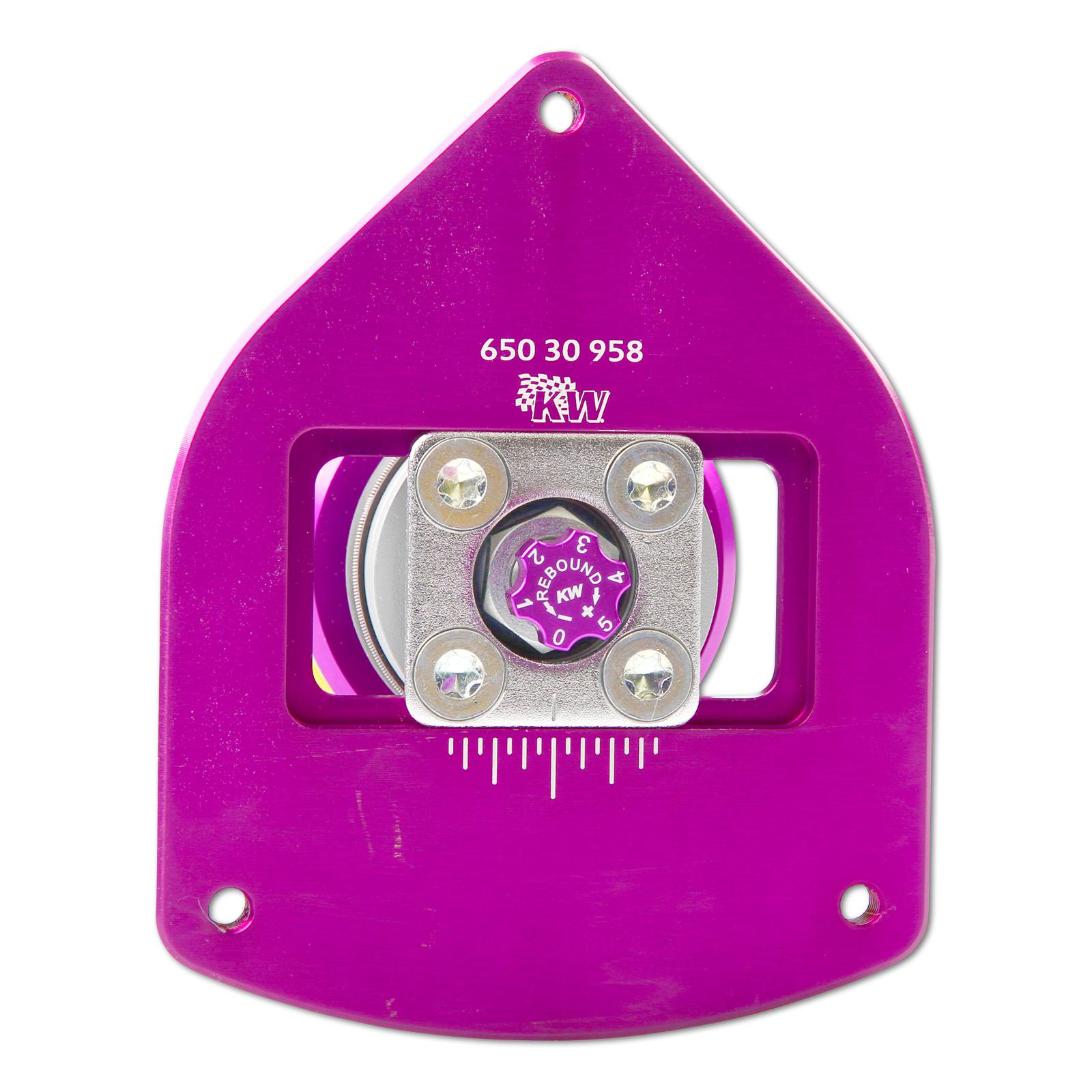 Neben optional erhältlichen einstellbaren Stützlagern können Sie bei den KW Clubsport Gewindefahrwerken die Dämpferkräfte unabhängig in der Zug- und Druckstufe mit der integrierten